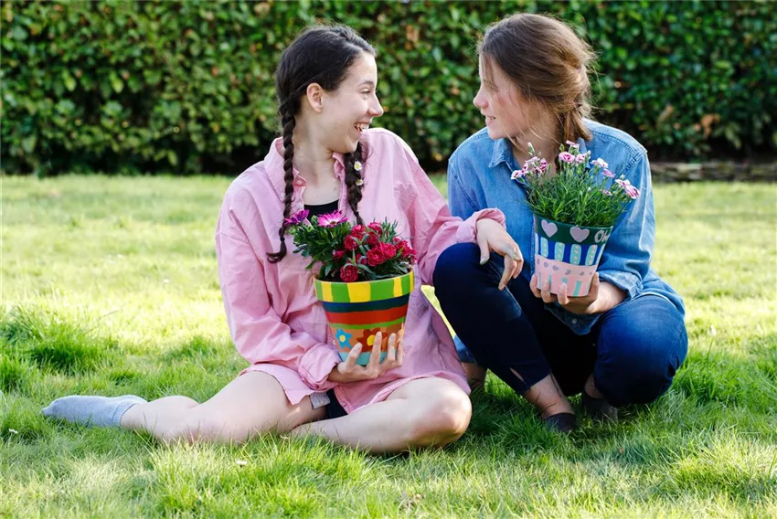 Kinder mit bemaltem Übertopf Insbesondere Besitzer von Steingarten-Pflanzen, aber auch die meisten Hobbygärtner im Allgemeinen, können eigentlich nie genug Pflanzgefäße haben. Auf dem Balkon, der Terrasse oder dem Eingangsbereich des Hauses können rustikale Pflanztöpfe für den letzten Pfiff sorgen. Diese lassen sich auch selber machen und stellen somit ein ideales Geschenk für alle Gartenliebhaber dar, die den Landhausstil mögen.