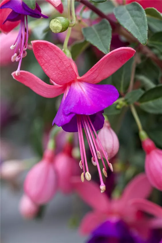 Fuchsia 'Jollies® Force Bondy'(s) Ob auf dem Balkon oder der Terrasse, ob gleich neben der Haustür oder als Highlight im Innenhof, die bepflanzten Körbe machen Laune. Dass sie gepflegt und dabei auch gewässert werden wollen, ist den Aufwand wert. Die Pflanzen sollten nicht austrocknen, aber andererseits keine nassen Füße bekommen. Auch das Herauspflücken von vertrockneten Teilen ist empfehlenswert, denn das fördert die weitere Blühfreudigkeit der pflanzlichen Bewohner.